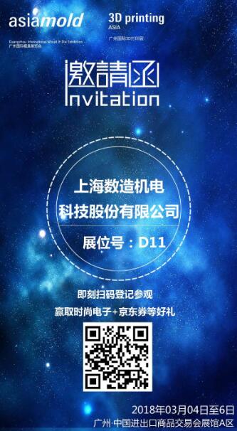 查看更多上海數(shù)造將亮相第十二屆“廣州國(guó)際模具展覽會(huì)(Asiamold)”,上海數(shù)造的發(fā)展道路離不開(kāi)您的支持與肯定。2018年3月4日—6日,廣州·中國(guó)進(jìn)出口商品交易會(huì)展館A區(qū)D11號(hào)展位,恭候您的到來(lái)。
