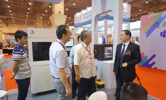 本屆3D打印節展會主辦方青島三迪時空董事長李培學陪同青島市政協副主席、廣州增材協會會長參觀了數造展位現場。