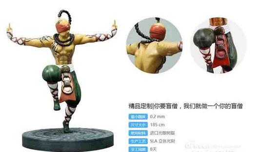 使用SLA光固化3D打印技術(shù)來制作動(dòng)漫、游戲、電影角色手板是絕佳的選擇,對(duì)于《英雄聯(lián)盟》的忠實(shí)玩家,可以擁有一個(gè)盲僧的人物角色是十分令人期待的。這是由魔猴網(wǎng)使用SLA光固化3D打印機(jī)所打印出的盲僧手板,打印出的白模再配合上色師傅的高超手藝,即可讓它栩栩如生,而且可以根據(jù)用戶的需求來定制化打印。
