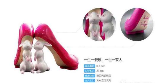 包貝爾婚禮專屬定制的新娘婚鞋則是刷爆了網(wǎng)絡(luò),眾明星紛紛被這雙鞋萌到了并發(fā)布微博,而這雙鞋實(shí)際上也是使用SLA 3D打印技術(shù)所實(shí)現(xiàn), 配合后期上色處理,徹底萌化人心。