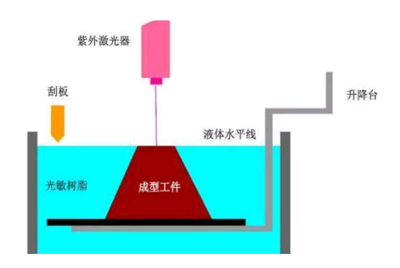 SLA(Stereo lithography Appearance),即立體光固化成型法。SLA是最早實用化的快速成形技術,工藝原理[2,3,4]如圖所示。